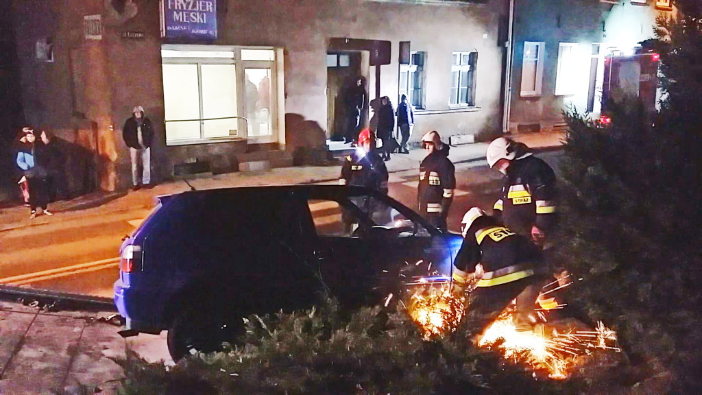 „Chciałem tylko wypróbować ręczny a wylądowałem na znaku” tak skończyła się brawurowa jazda Golfem. Wieczorem młody kierowca VW Golfa nie dostosował prędkości do panujących warunków na drodze w wyniku czego jego auto wypadło z drogi nadziewając się na znak przejścia dla pieszych. Rura znaku przebiła podłogę samochodu uniemożliwiając zabranie pojazdu, dopiero strażacy przy pomocy specjalistycznego sprzętu odcięli auto od znaku. Prawdopodobną przyczyną wypadku była zbyt duża prędkośc połączona z „wejściem w zakręt na ręcznym„.