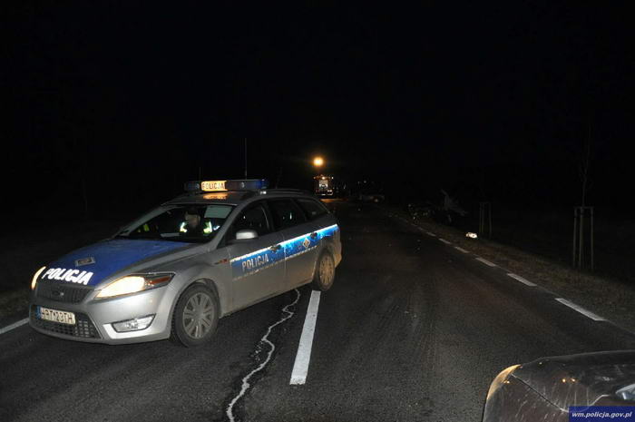 Do tego tragicznego w skutkach zdarzenia doszło w sobotę w nocy na trasie Łomy – Świątki w gminie Jonkowo. Ze wstępnych ustaleń wynika że, kierowca forda nie dostosował prędkości do warunków ruchu, na łuku drogi stracił panowanie nad pojazdem, zjechał na przeciwległy pas jezdni i tam uderzył w przydrożne drzewo. Siła zderzenia była tak duża, że 20- latek zginął na miejscu.