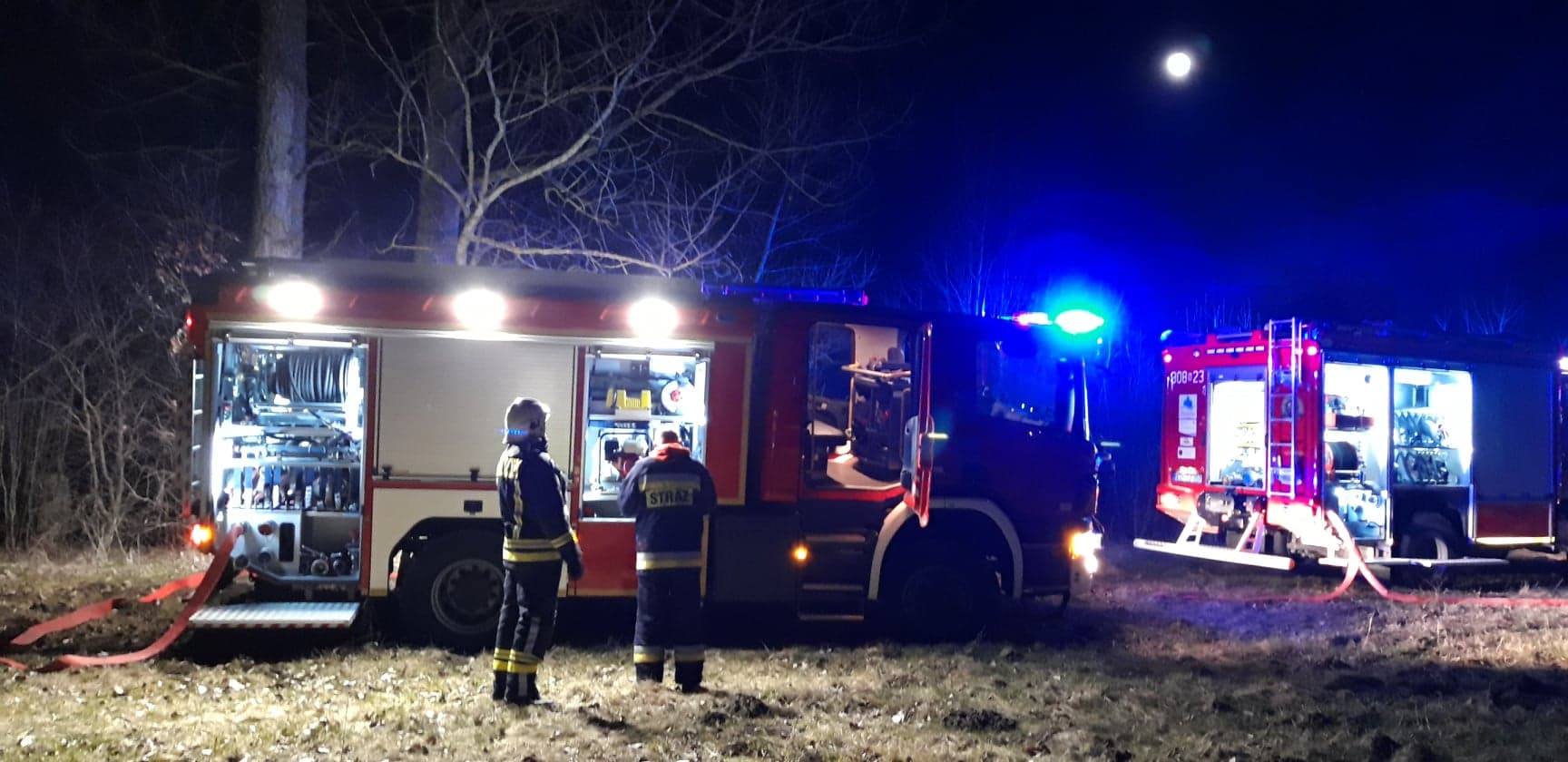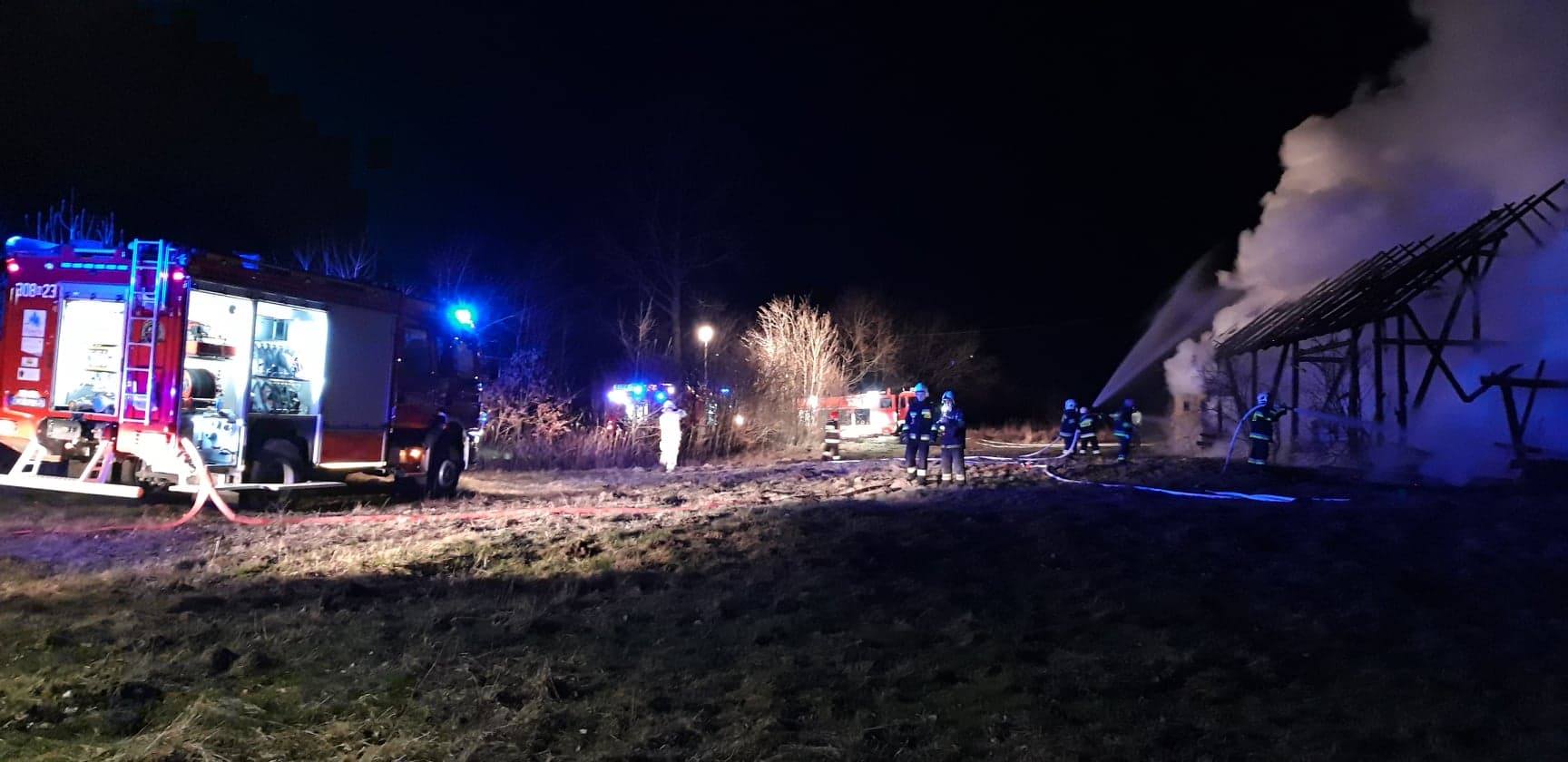 Po przybyciu pierwszych zastępów straży pożarnej potwierdzono, że pożarem całkowicie objęta jest stodoła drewniana i dodatkowo zagrożony jest budynek mieszkalny. Działania ratownicze polegały na podaniu gaśniczych prądów wody w natarciu na budynek objęty pożarem oraz gaśniczych prądów wody w obronie budynku mieszkalnego.