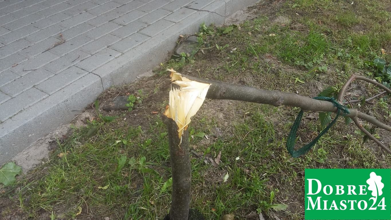 Kolejny akt wandalizmu w Dobrym Mieście. Znowu połamali drzewka przy ul. Zwycięstwa. Ktoś zdecydowanie nie lubi drzew w Dobrym Mieście. Dopiero co Urząd Miasta posadził na nowo drzewka w miejsce połamanych poprzednim razem, a już wandale zdążyli połamać prawie wszystkie drzewka wzdłuż ulicy Zwycięstwa.