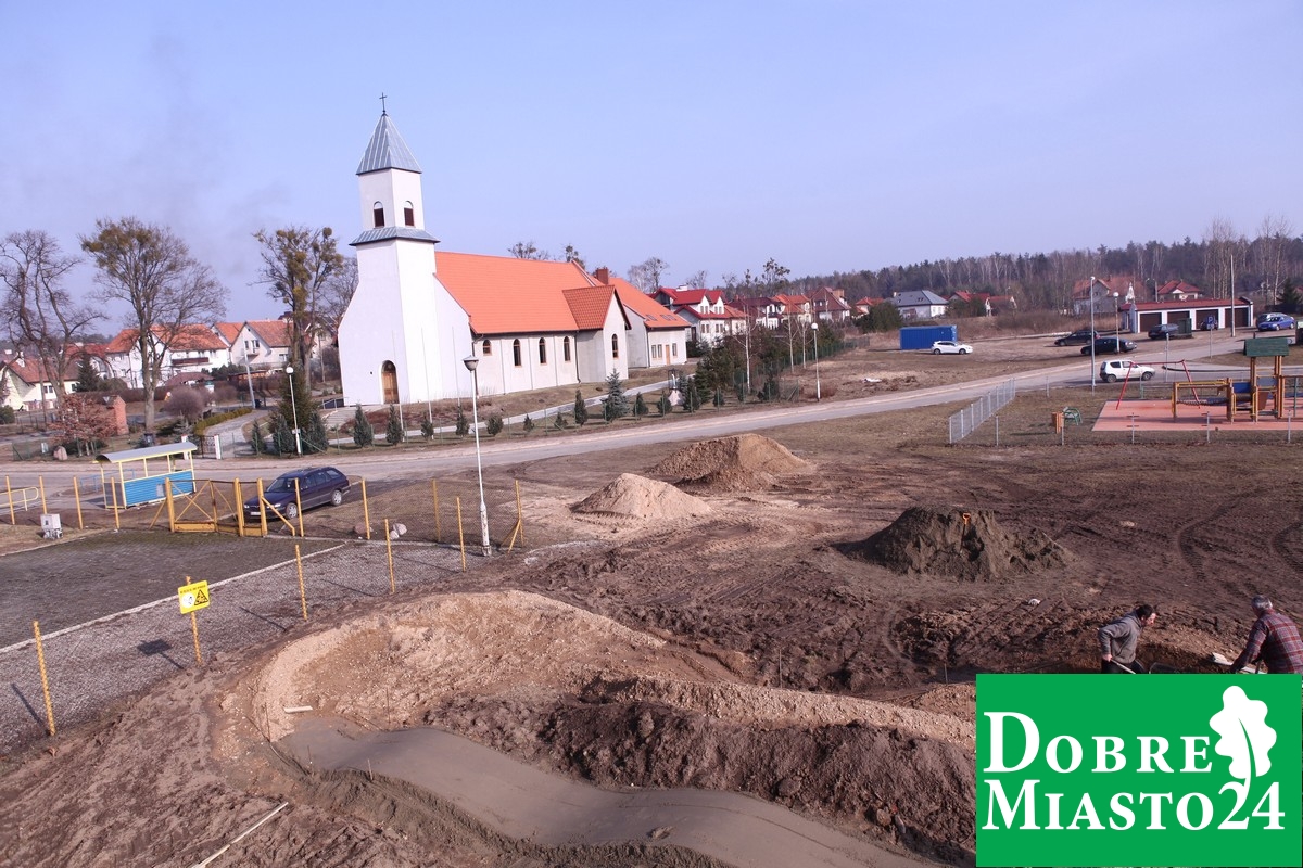 Budowa toru rowerowego „pumptrack” przy basenie idzie pełną parą . Pomimo burzliwych dyskusji na temat „budować czy nie” koncepcja toru rowerowego jest właśnie realizowana