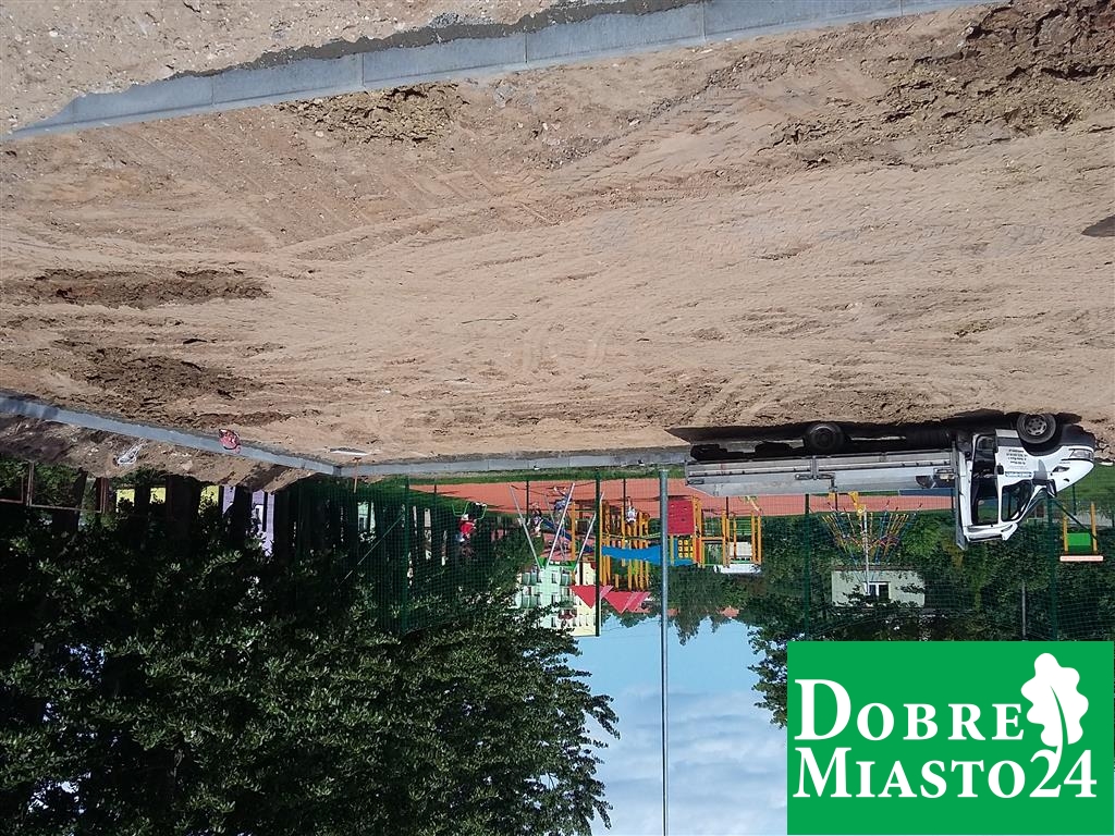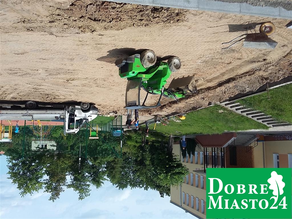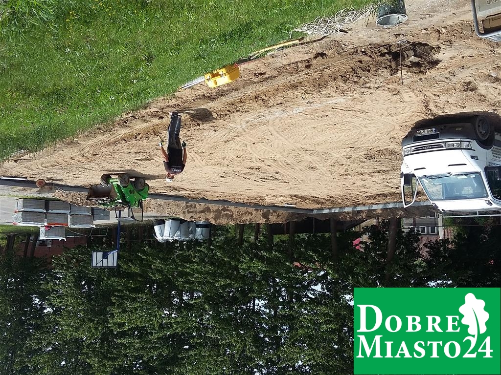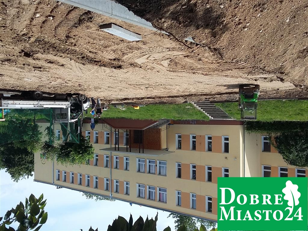 Uczniowie na wakacjach, a tym czasem w Szkole Podstawowej nr. 2 dzieje się; „Oj, dzieje się, dzieje… .Tyle ekip budowlanych na raz to jeszcze nie pracowało! Budowa boiska, naprawa dachu, remont toalet, sali lekcyjnej… Wspaniale!”