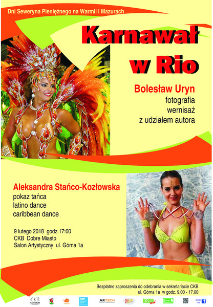 Serdecznie zapraszamy na wernisaż fotografii Bolesława Uryna z karnawału w Rio. Wystawie towarzyszyć będzie pokaz tańca brazylijskiego Aleksandry Stańco – Kozłowskiej.