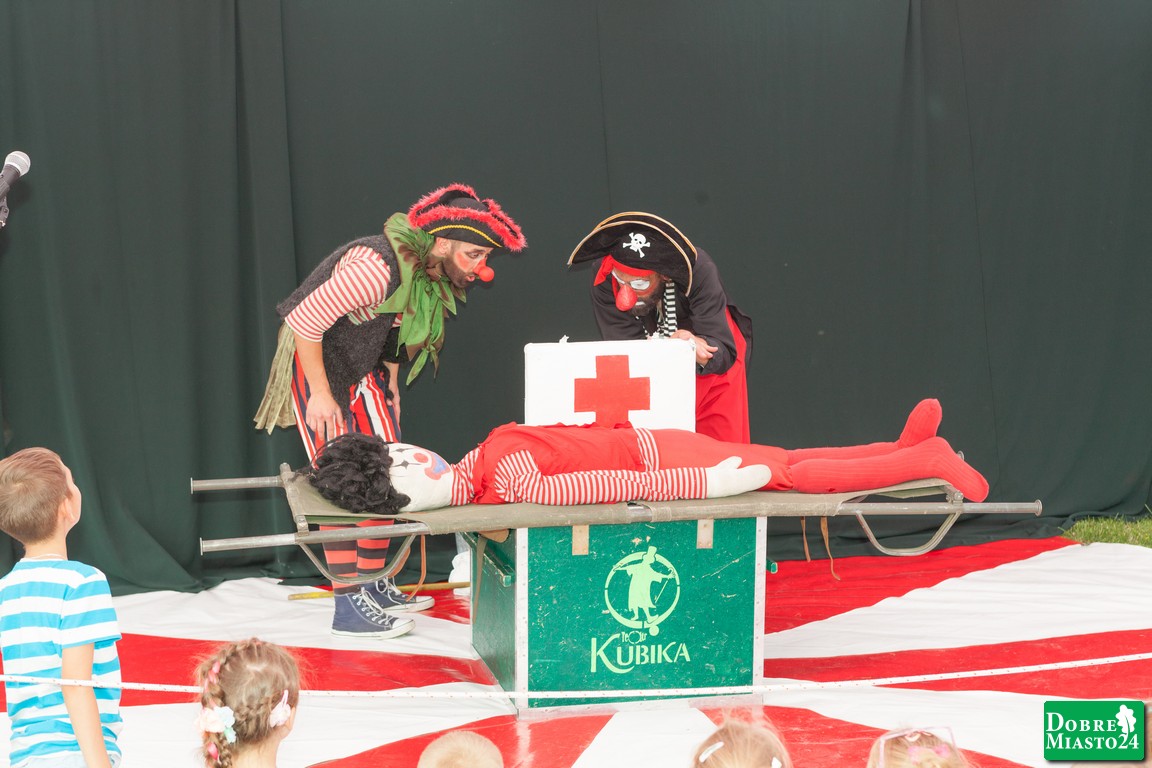 Baśniowy statek płynący ulicami, a w nim piraci, którzy pod wodzą kapitana Drabinki przywiozą skarby z wakacyjnych przygód. Arcyśmieszny spektakl w wykonaniu Teatru Kubika – Akcja Operacja z udziałem widzów. Pirat Drabinka postanawia zostać lekarzem… sprawdza swoje umiejętności chirurga… Ciekawe kogo będzie operował? Czy operacja się powiedzie? Zobacz sam, rewelacyjny spektakl pełen lekkiego humoru, a w roli Drabinki Radosław Kubik. Poza tym gigantyczne bańki mydlane oraz nauka chodzenia na szczudłach.
