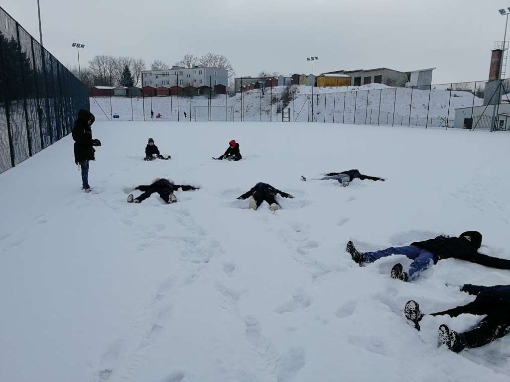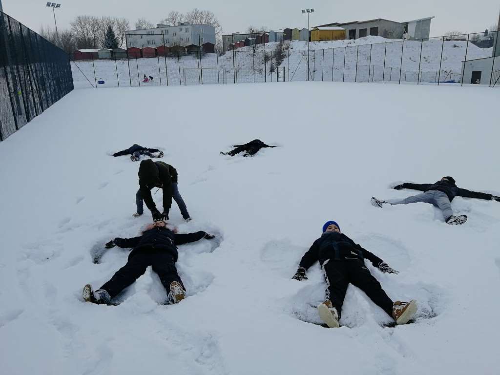 W ostatnim dniu ferii dzięki sprzyjającym warunkom atmosferycznym mogliśmy wyjść na dwór, aby wspólnie ulepić bałwana, zbudować iglo, a przede wszystkim zjeżdżać na sankach. Na zakończenie całego tygodnia zabaw przygotowaliśmy również ognisko, przy którym można było się ogrzać i usmażyć kiełbaski.