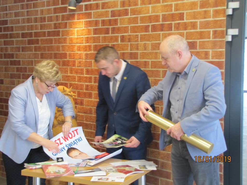 W dniu 16 stycznia 2019 roku w nowym budynku Gminnej Biblioteki Publicznej w Świątkach nastąpiło uroczyste przygotowanie Tuby Czasu w obecności Wójta Gminy Świątki Sławomira Kowalczyka, Sekretarza Gminy Jarosława Milewskiego oraz Pani Kierownik Biblioteki Haliny Kirjew.