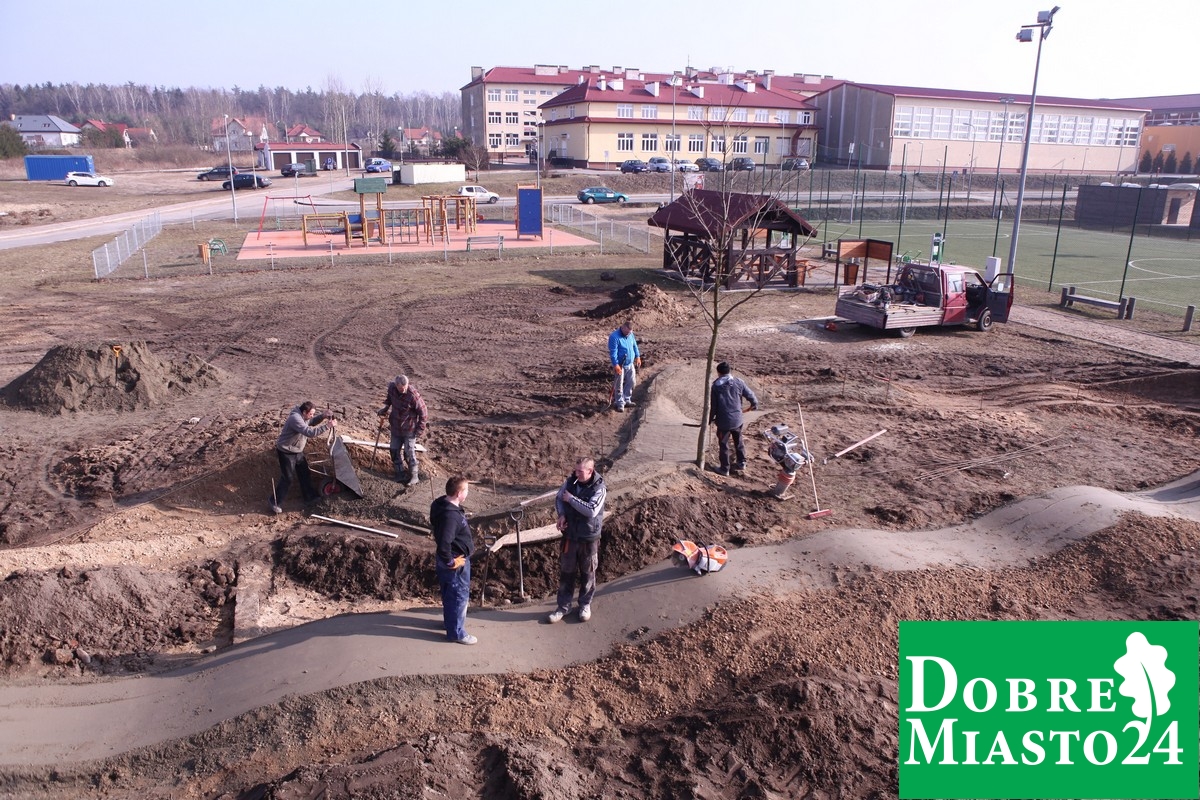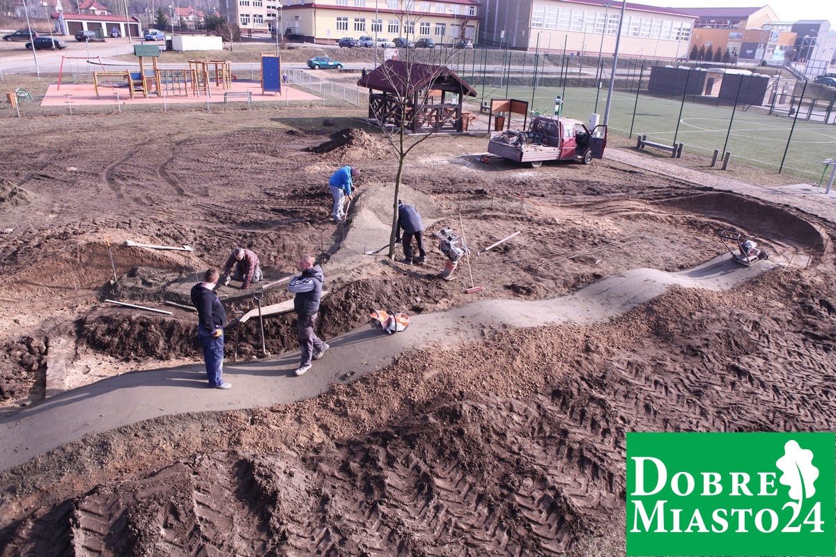 Budowa toru rowerowego „pumptrack” przy basenie idzie pełną parą . Pomimo burzliwych dyskusji na temat „budować czy nie” koncepcja toru rowerowego jest właśnie realizowana