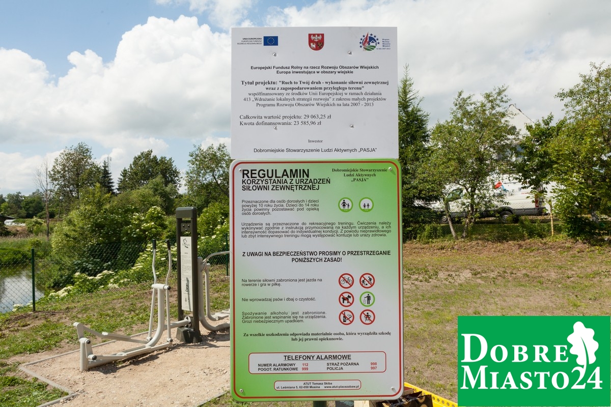 Dobromiejskie Stowarzyszenie Ludzi Aktywnych PASJA jest inicjatorem projektu „Ruch to Twój druh” – dzięki któremu została wykonana siłowni zewnętrznej wraz z zagospodarowaniem przyległego terenu przy ulicy Kościuszki.