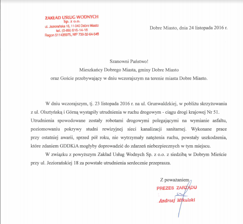 Pan Burmistrz ma chyba już w dupie mieszkańców naszego miasta, a dlaczego, bo zatrudnienie Pana Mikulskiego na stanowisku Prezesa Zarządu ZUW to był jeden z jego wielu błędów.