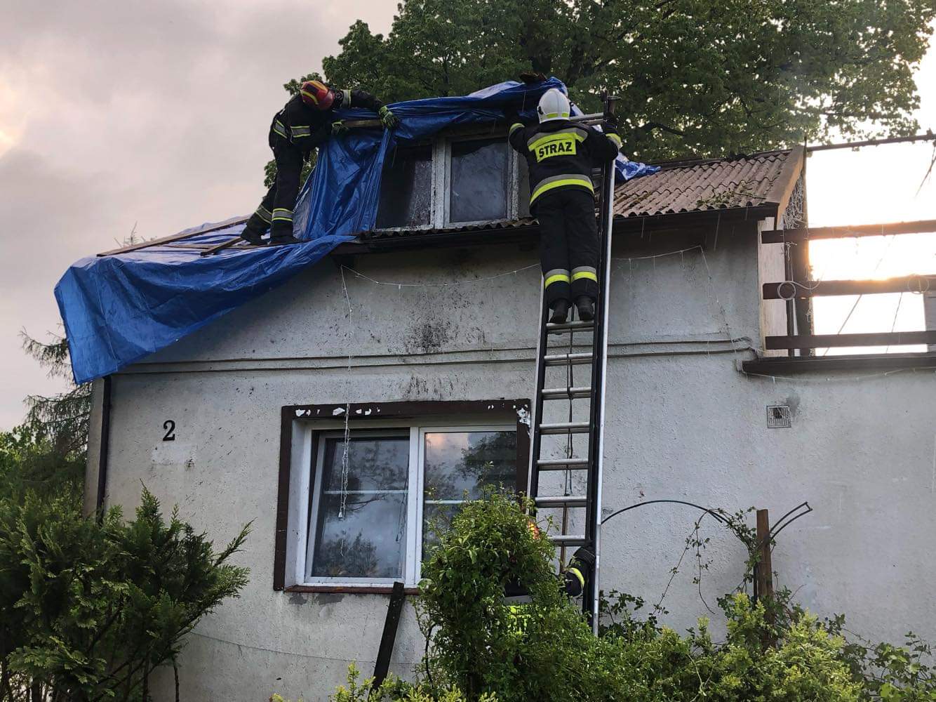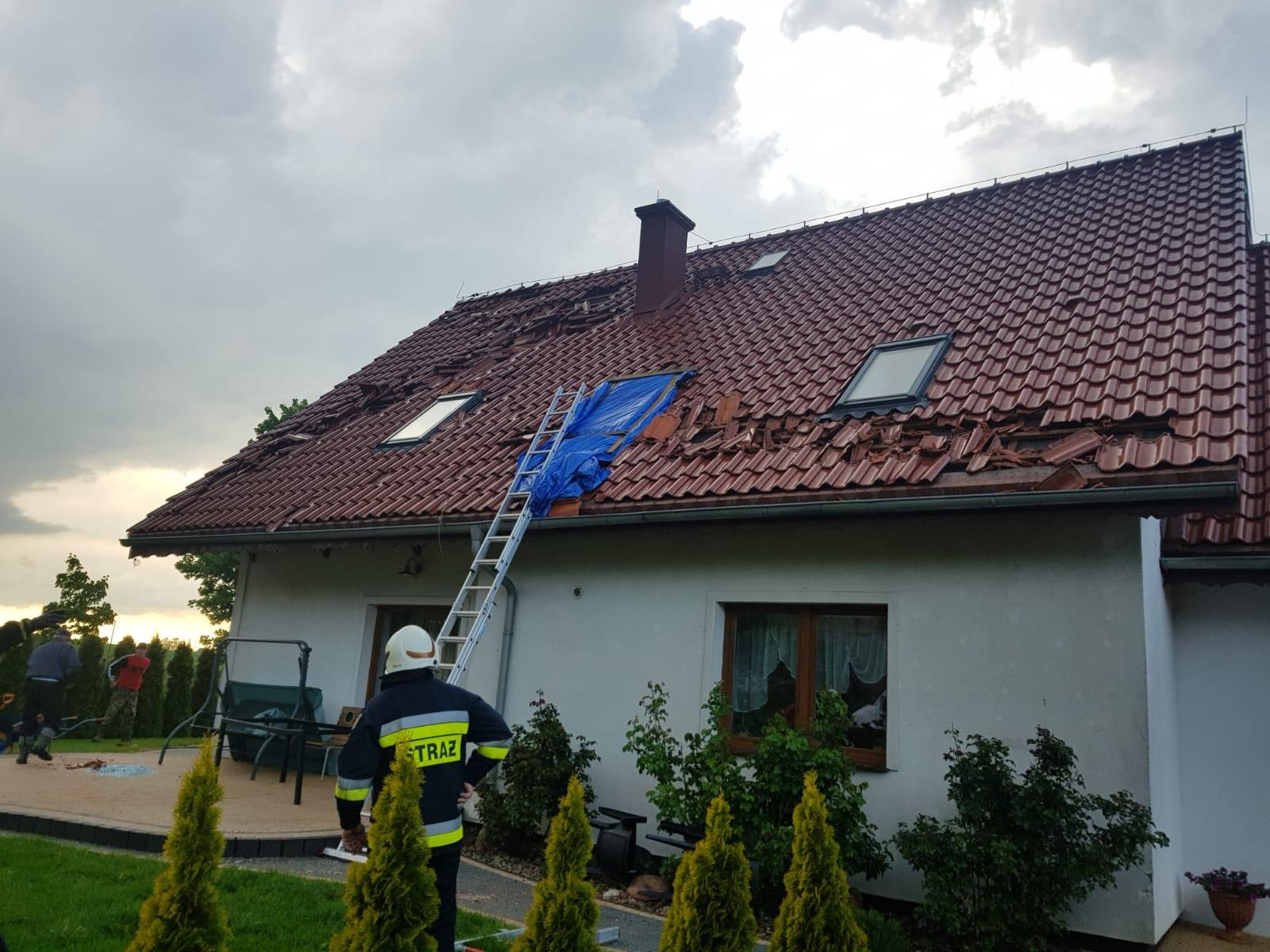 Działania ratownicze obejmowały zabezpieczenie miejsc zdarzenia, zabezpieczenie uszkodzonych dachów budynków przy pomocy plandek oraz usunięcie zalegających i zwisających konarów drzew. Łącznie w działaniach ratowniczych brały udział cztery zastępy z dobromiejskiej jednostki, OSP Praslity, dwa zastępy z JRG 2 KM PSP Olsztyn oraz Pogotowie Energetyczne.