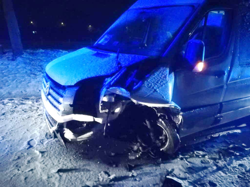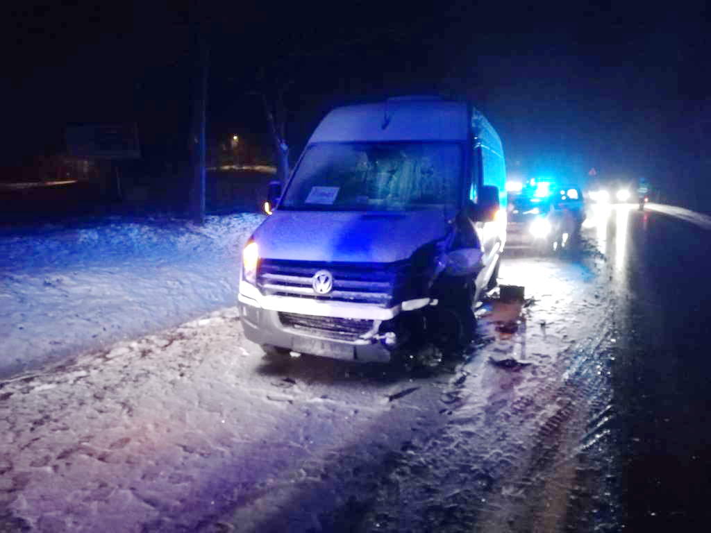 W dniu 2018-01-25 piątek po godz. 17:00 kierująca hyundaiem jadąc od Dywit w kierunku Ługwałdu zjechała na przeciwległy pas ruchu i zderzyła się czołowo z autobusem vw crafter. Uszkodzone zostały oba pojazdy, nikt z podróżnych nie ucierpiał.