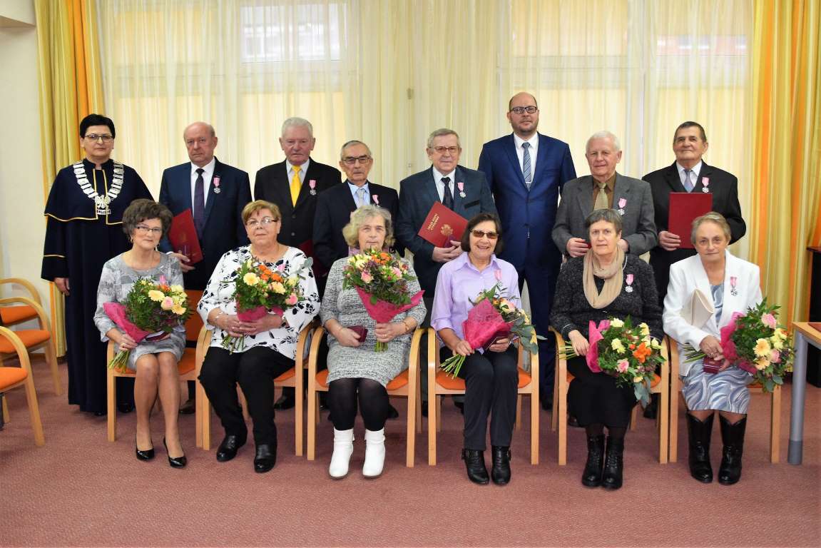 50 lat razem! Stanisława i Lech Goślińscy, Krystyna i Antoni Kosakowscy, Krystyna i Wacław Kościewicz, Urszula i Zenon Pinkowscy, Joanna i Janusz Mierzejewscy, Katarzyna i Norbert Papke, Irena i Władysław Rejner, Wiesława i Mirosław Smolarek, Halina i Mieczysław Tabaka, Marianna i Henryk Wykowscy zostali uhonorowani medalami za Długoletnie Pożycie Małżeńskie nadawanymi przez Prezydenta RP. Serdecznie gratulujemy Złotych Godów!